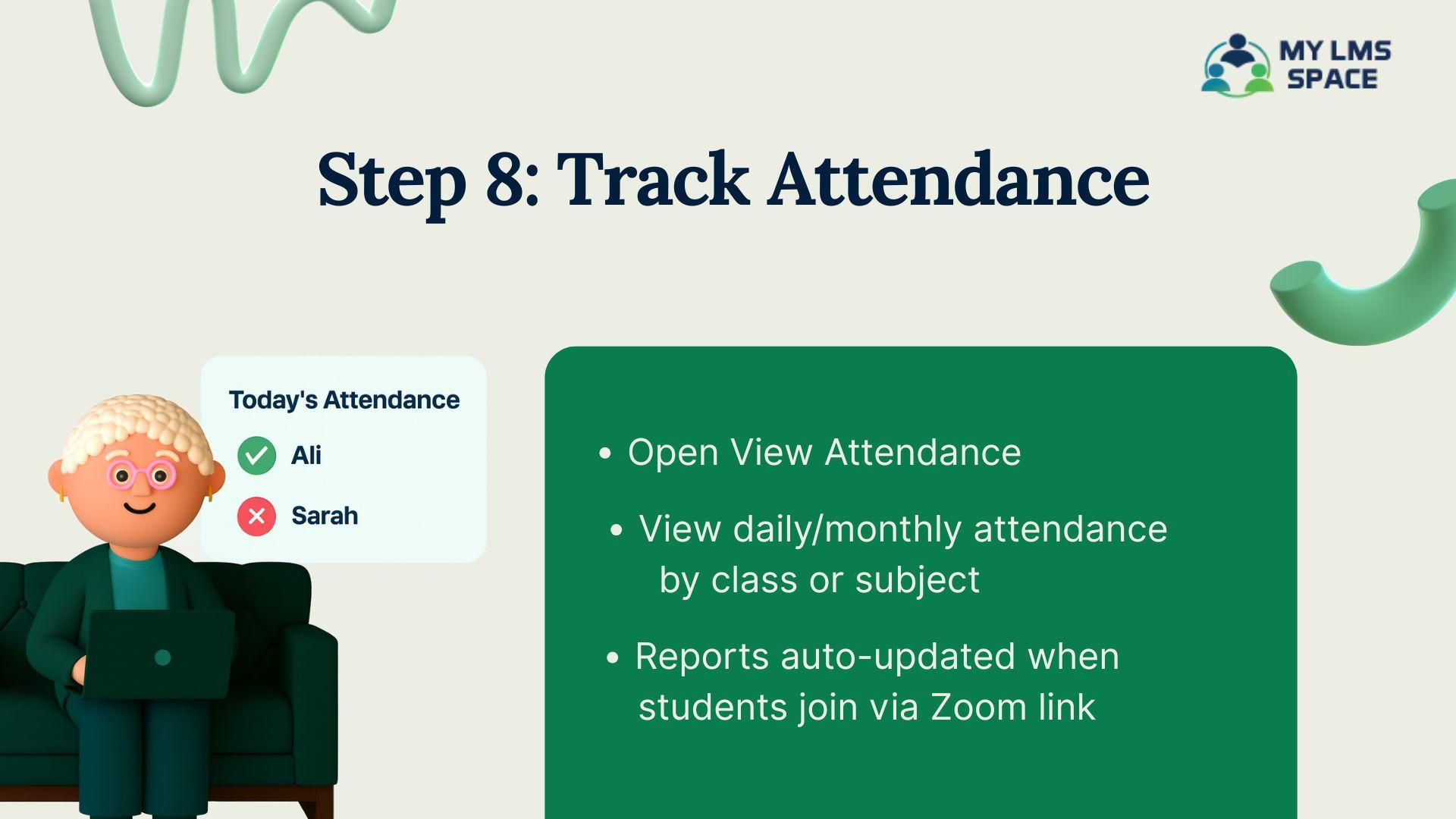 Share Zoom links, and mark attendance automatically when students join with a single click.